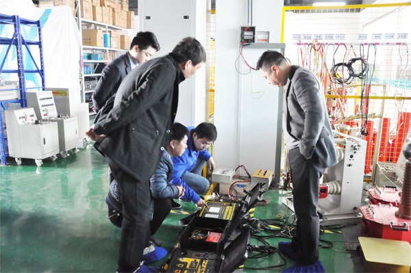 東北客戶此行主要考察SF6氣體回收裝置、無局部放電試驗裝置、高壓開關動特性測試儀等設備。 在考察過程中,工程師還為客戶進行了設備操作的現(xiàn)場演示,在演示過程中,客戶時不時會提出他們的疑問,我們的工程師也很耐心的為其解答。通過一天的考察后,東北客戶對國電西高的設備十分滿意,表示有合作意向。
