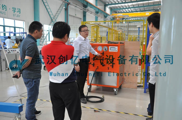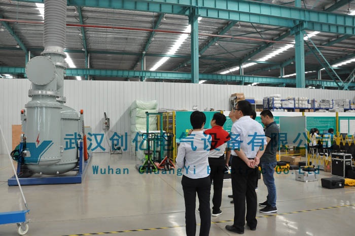 在參觀過程中,客戶對我司即將出口的新加坡的GIT(SF6移動(dòng)式工頻耐壓局放試驗(yàn)裝置)表現(xiàn)出濃厚的興趣。