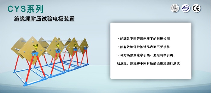 根據(jù)國家《DLT 976-2005 帶電作業(yè)工具、裝置和設(shè)備預(yù)防性試驗規(guī)程》,我們研發(fā)本裝置可對高強滌綸牽引繩、迪尼瑪牽引繩、錦綸絕緣繩、蠶絲絕緣繩、防潮蠶絲絕緣繩、丙綸繩、尼龍繩、麻繩等不同材質(zhì)的絕緣繩進行測試,從原來的基礎(chǔ)上改進了成了內(nèi)嵌導(dǎo)電泡棉,加強被試品與電極緊密貼合,還能有效地保護被試品表面不受損傷,防止可能出現(xiàn)的被試品測試過程中移動的可能,能滿足不同等級電壓下的耐壓檢測。
