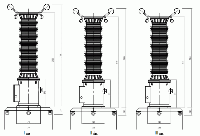 說明 | 1. 準(zhǔn)確度為0.05級的變比實際誤差可以滿足0.02級要求; 2. 可以根據(jù)用戶的實際需求,在合理范圍內(nèi)增加相應(yīng)變比; 3. 臥式運輸支架和四輪底座為可選配置 (表中的尺寸均不帶底座及均壓環(huán)) 。 |