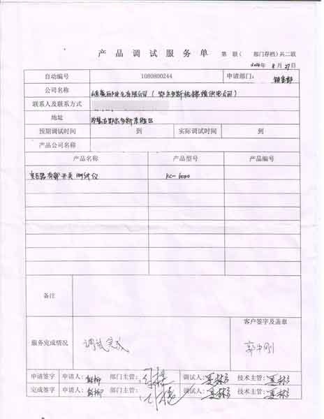 2014-08-30 山東豪酈電氣有限公司進行調試服務,調試產品:CYKC-6000變壓器有載開關測試儀(實際是CYKC-5000變壓器有載開關測試儀)