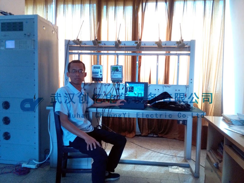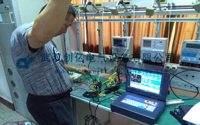 現(xiàn)場采用客戶的三相三線電能表為被試品向客戶進行操作演示,并培訓客戶使用我們的產品。我司技術人員先和電站人員前往實驗室進行試驗。首先使用電能表校驗臺模擬電能表的負荷,指導客戶動手操作,將CYYM-3B的電壓電流線接到三相三線的電能表上。然后進行模擬實驗。