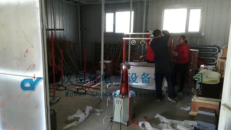 技術(shù)人員抵達(dá)現(xiàn)場后,先是與客戶處現(xiàn)場的負(fù)責(zé)人員一起對(duì)貨物進(jìn)行了拆箱和清點(diǎn)。然后對(duì)安全工器具上的毫安表等器件進(jìn)行了組裝。隨后以客戶處的被試品進(jìn)行試驗(yàn),首先先向客戶演示了試驗(yàn)設(shè)備之間的接線。然后著重演示了被試品的處理,需要有效地形成閉合回路。