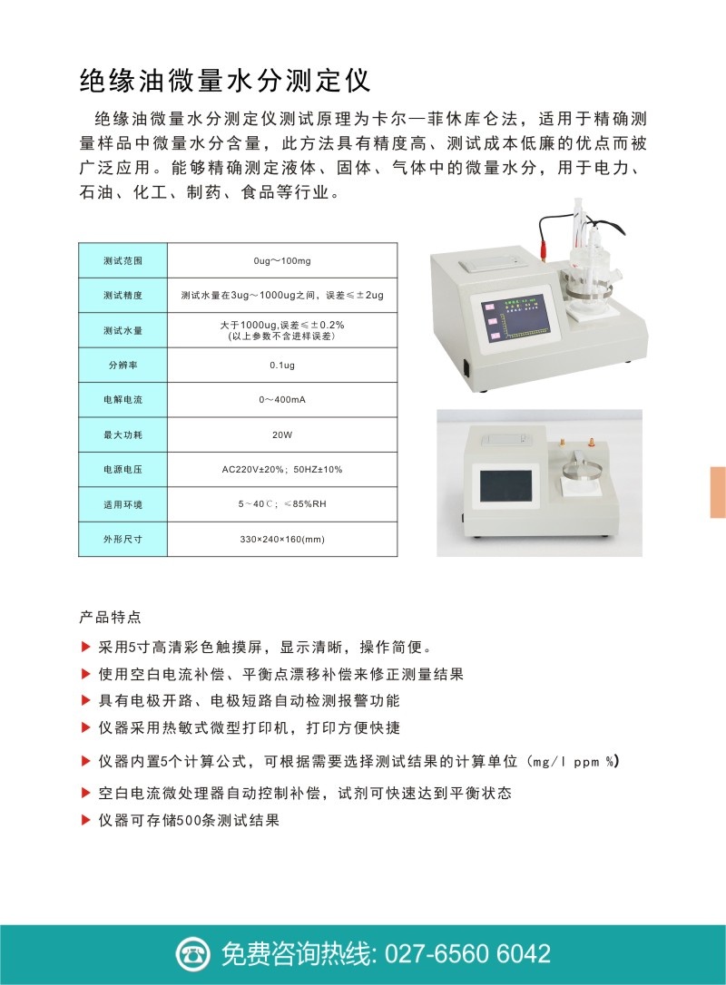 3. 測試水量大于1000ug,誤差≤±0.2%(以上參數(shù)不含進(jìn)樣誤差)