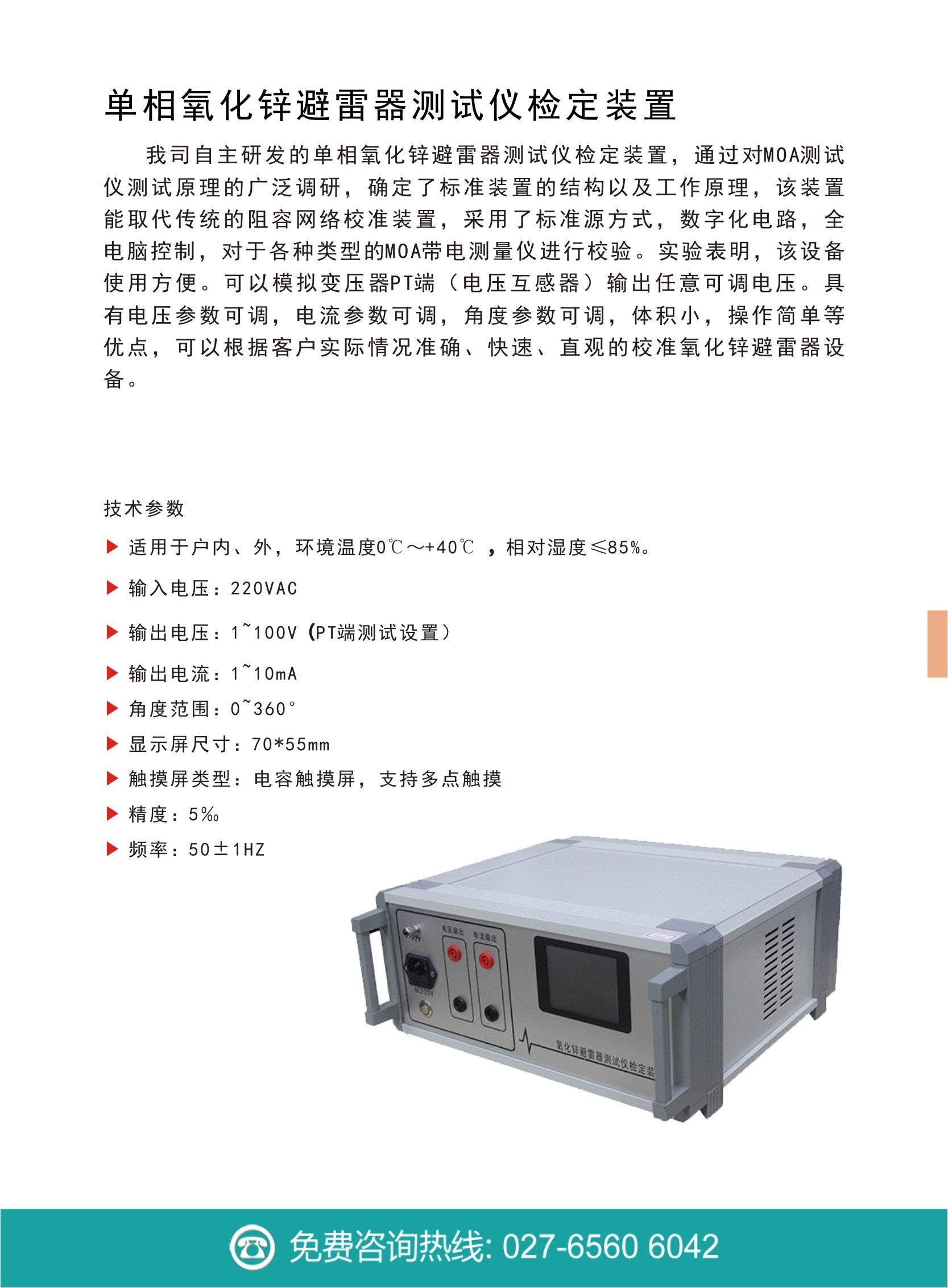 創(chuàng)億電氣自主研發(fā)的CY-301單相氧化鋅避雷器測試儀檢定裝置,通過對MOA測試儀測試原理的廣泛調(diào)研,確定了標(biāo)準(zhǔn)裝置的結(jié)構(gòu)以及工作原理,該裝置能取代傳統(tǒng)的阻容網(wǎng)絡(luò)校準(zhǔn)裝置,采用了標(biāo)準(zhǔn)源方式,數(shù)字化電路,全電腦控制,對于各種類型的MOA帶電測量儀進(jìn)行校驗。實驗表明,該設(shè)備使用方便??梢阅M變壓器PT端(電壓互感器)輸出任意可調(diào)電壓。具有電壓參數(shù)可調(diào),電流參數(shù)可調(diào),角度參數(shù)可調(diào),體積小,操作簡單等優(yōu)點,可以根據(jù)客戶實際情況準(zhǔn)確、快速、直觀的校準(zhǔn)氧化鋅避雷器設(shè)備。
