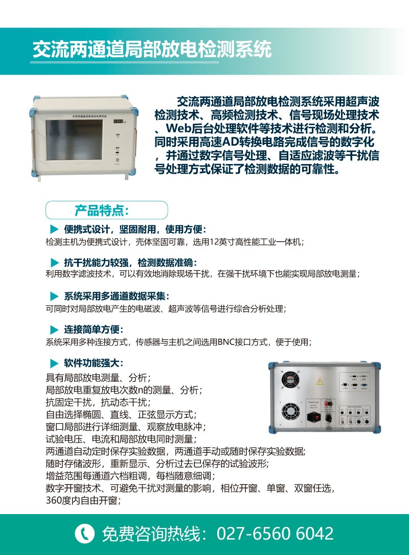交流兩通道局部放電檢測系統(tǒng)是我公司技術人員根據(jù)多年高壓電氣設備局放檢測經(jīng)驗設計生產(chǎn)。